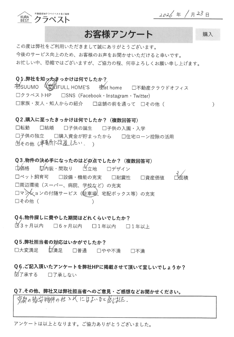 先日、弊社にて中古戸建てを購入いただいたお客様からいただいた